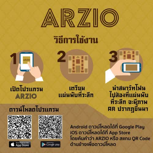 ภาพแนะนำ Mobile Apps ชื่อ ARZIO สำหรับใช้กับแผ่นพับที่ระลึก ได้รับใบอนุญาตภายใต้ ให้เผยแพร่-ดัดแปลง-โดยต้องระบุที่มา 3.0 Thailand.