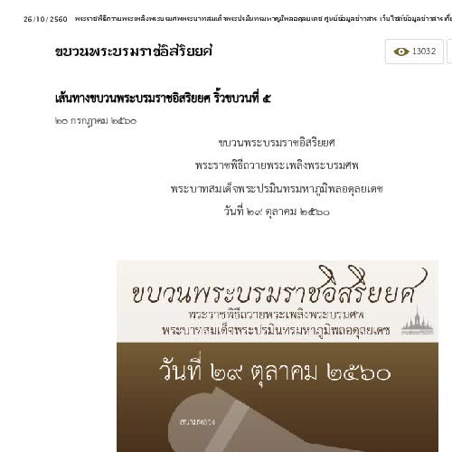 (2560).                            เส้นทางขบวนพระบรมราชอิสริยยศ ริ้วขบวนที่ ๕,