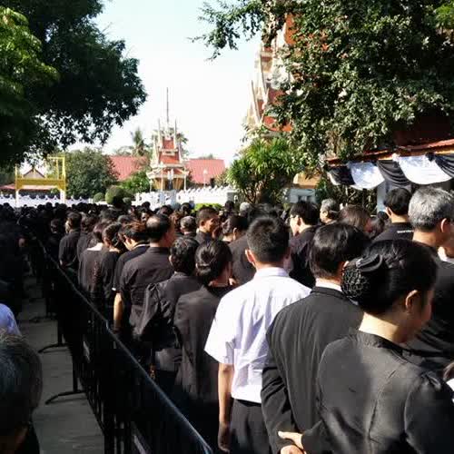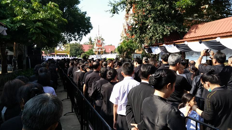 พสกนิกรร่วมถวายดอกไม้จันทน์ ณ วัดป่าแสงอรุณ อ.เมือง จ.ขอนแก่น ได้รับใบอนุญาตภายใต้ ให้เผยแพร่-โดยต้องระบุที่มาแต่ห้ามดัดแปลงและห้ามใช้เพื่อการค้า 3.0 Thailand.