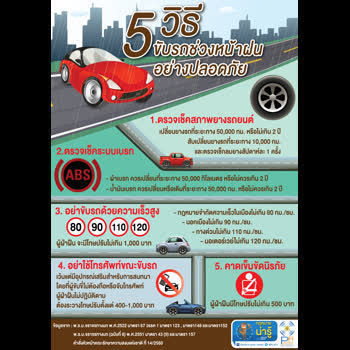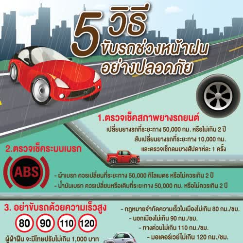 | ชื่อเรื่อง : Infographic 5 วิธีขับรถปลอดภัย ช่วงหน้าฝน |