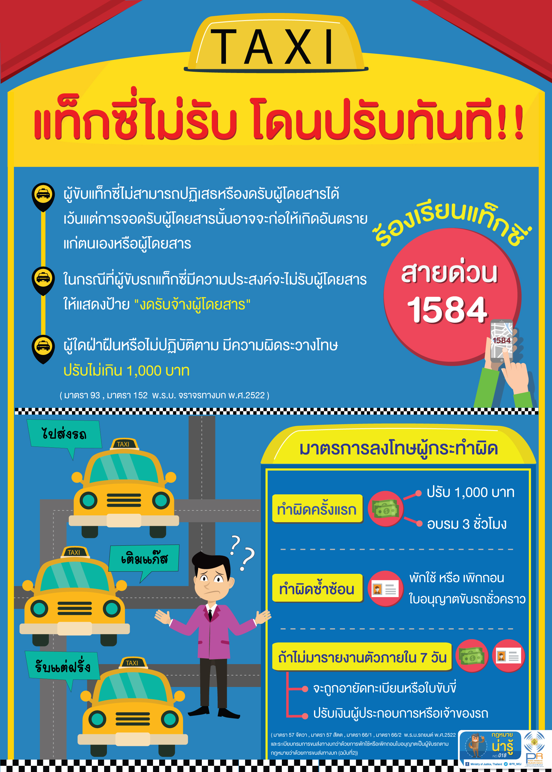 Infographic taxiไม่รับโดนปรับทันที ได้รับใบอนุญาตภายใต้ ให้เผยแพร่-โดยต้องระบุที่มาแต่ห้ามดัดแปลงและห้ามใช้เพื่อการค้า 3.0 Thailand.