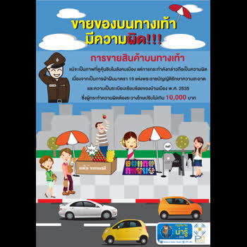 Infographic ขายของบนทางเท้ามีความผิด ได้รับใบอนุญาตภายใต้ ให้เผยแพร่-โดยต้องระบุที่มาแต่ห้ามดัดแปลงและห้ามใช้เพื่อการค้า 3.0 Thailand.