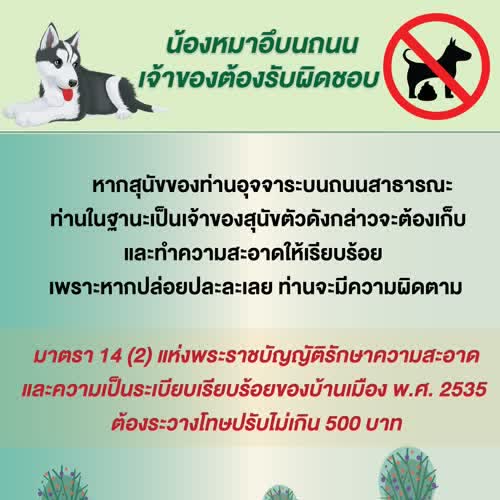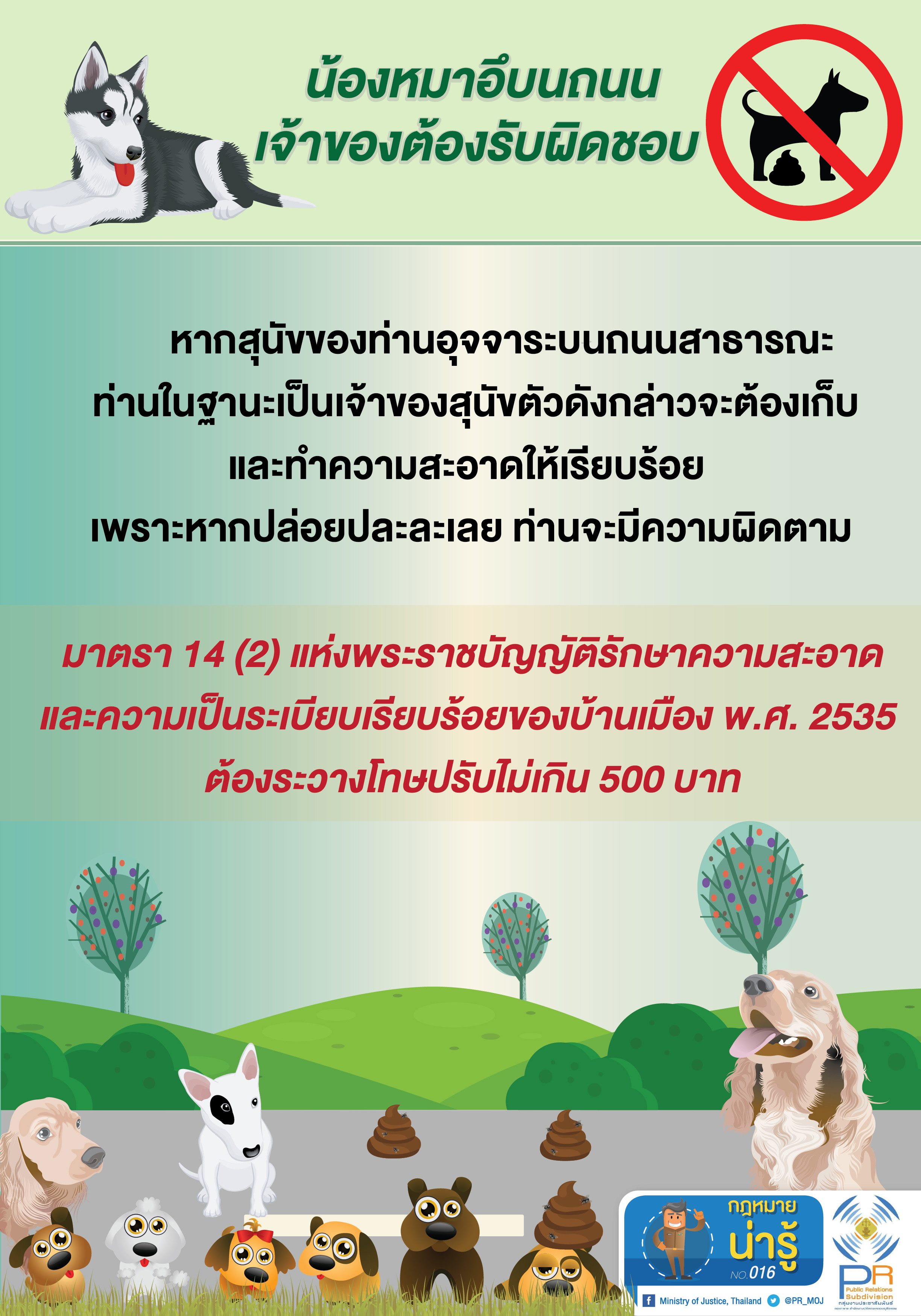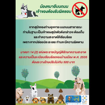 Infographic น้องหมาอึบนถนน เจ้าของต้องรับผิดชอบ ได้รับใบอนุญาตภายใต้ ให้เผยแพร่-โดยต้องระบุที่มาแต่ห้ามดัดแปลงและห้ามใช้เพื่อการค้า 3.0 Thailand.