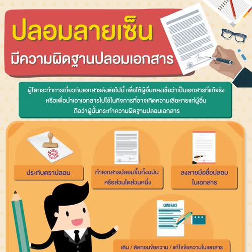 | คำสำคัญ : อินโฟกราฟิก, ปลอมลายเซ็น, กฏหมาย, infographic, ปลอมเอกสาร |