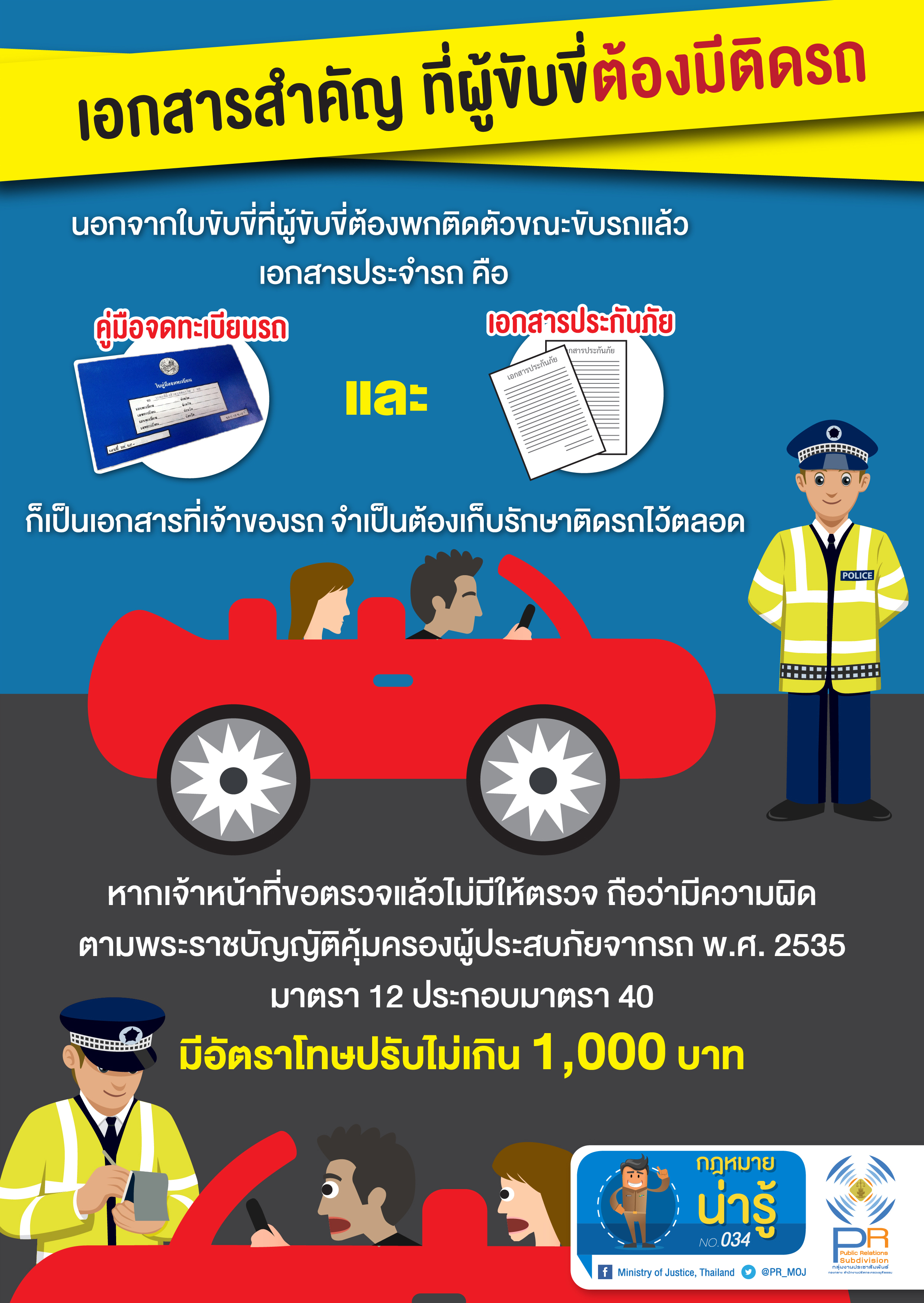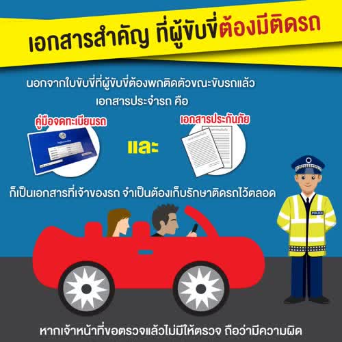 Infographic เอกสารสำคัญที่ผู้ขับขี่ต้องมีติดรถ ได้รับใบอนุญาตภายใต้ ให้เผยแพร่-โดยต้องระบุที่มาแต่ห้ามดัดแปลงและห้ามใช้เพื่อการค้า 3.0 Thailand.