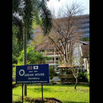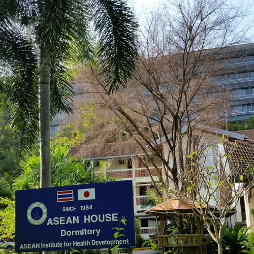 | คำอธิบาย : หอพักอาเซียนเฮาส์ สร้างขึ้นเมื่อปี พ.ศ.2527 โดยความร่วมมือของรัฐบาลไทยและรัฐบาลญี่ปุ่น ในขณะนั้น ซึ่งกำกับและดูแลโดยสถาบันพัฒนาสุขภาพอาเซียน เป็นหน่วยงานในสังกัดของมหาวิทยาลัยมหิดล หอพักเป็นอาคารคอนกรีตสูง 3 ชั้น จำนวน 50 ห้อง ทำเลตั้งอยู่ภายในมหาวิทยาลัยมหิดล วิทยาเขตศาลายา การเดินทางสะดวก ปลอดภัย สภาพแวดล้อมสะอาด ร่มรื่นด้วยต้นไม้นานาชนิด มีพนักงานรักษาความปลอดภัยตลอด 24 ชั่วโมง เปิดให้บริการสำหรับนักศึกษาและบุคคลทั่วไป ประเภทรายวัน และรายเดือน |