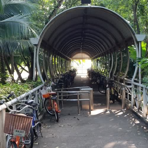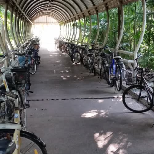 | คำอธิบาย : อุโมงค์จักรยาน เป็นทางเดินกว้างประมาณ 2 เมตร หลังคาโค้งกลมมีลักษณะคล้ายอุโมงค์ นักศึกษามักนำจักรยานมาจอดไว้ตลอดแนว อยู่ใกล้วิทยาลัยดุริยางคศิลป์ |