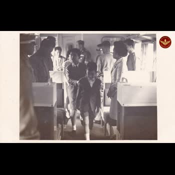 | คำอธิบาย : พระบาทสมเด็จพระเจ้าอยู่หัว และสมเด็จพระนางเจ้าฯ พระบรมราชินีนาถ เสด็จพระราชดำเนินโดยขบวนรถไฟพระที่นั่งดีเซลรางนิอิกาตะ ไปทรงถวายผ้าพระกฐินต้น ณ วัดเทวสังฆาราม และทรงเยี่ยมเยียนราษฎรจังหวัดกาญจนบุรี เมื่อวันที่ 26 ตุลาคม 2510 |