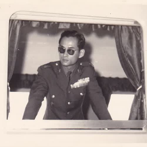 | คำอธิบาย : พระบาทสมเด็จพระเจ้าอยู่หัว และสมเด็จพระนางเจ้าฯ พระบรมราชินีนาถ เสด็จพระราชดำเนินโดยขบวนรถไฟพระที่นั่งดีเซลรางนิอิกาตะ ไปทรงถวายผ้าพระกฐินต้น ณ วัดเทวสังฆาราม และทรงเยี่ยมเยียนราษฎรจังหวัดกาญจนบุรี เมื่อวันที่ 26 ตุลาคม 2518 |
