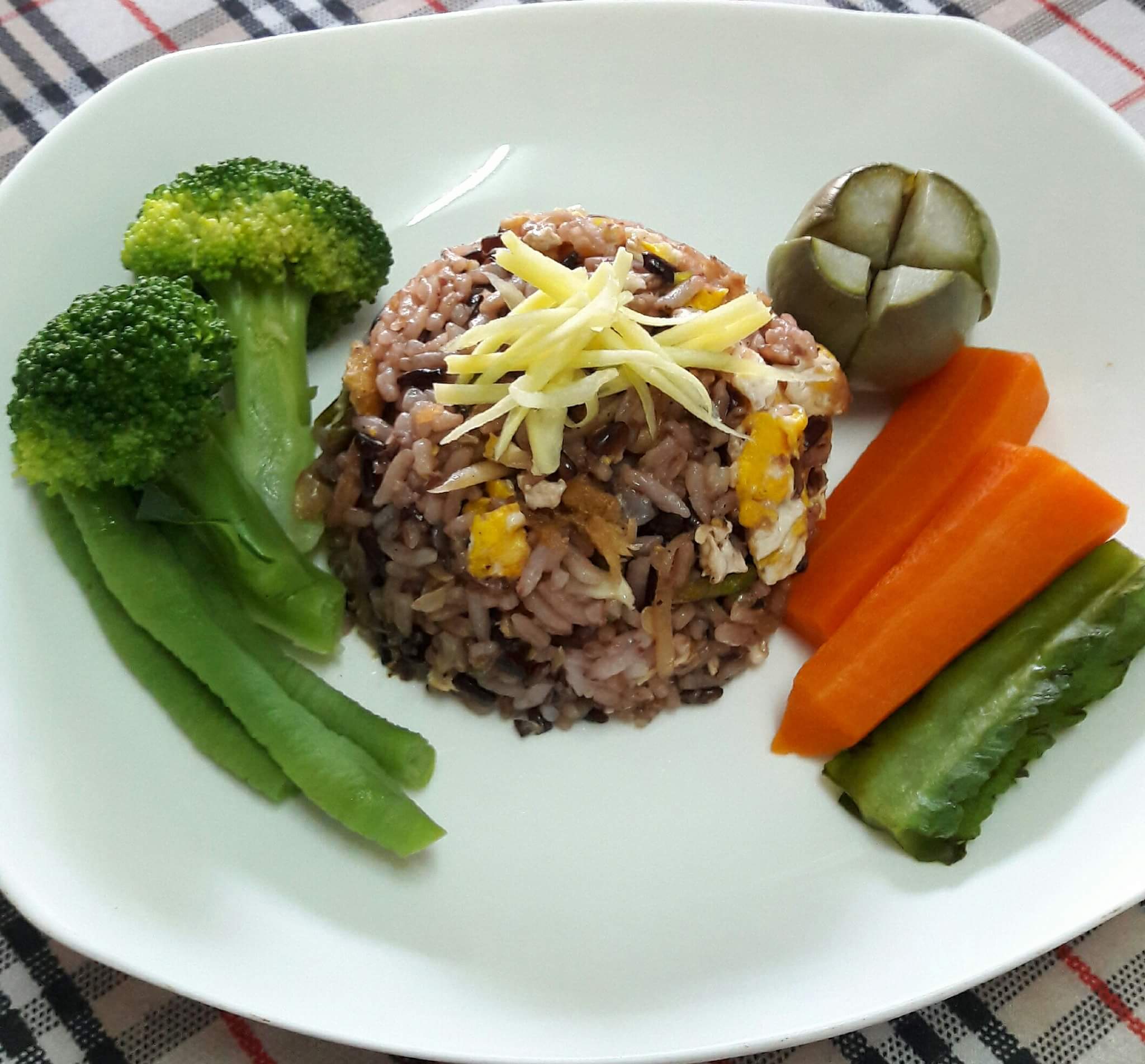 | คำอธิบาย : ข้าวผัดปลาสลิดกับน้ำพริกมะม่วง |