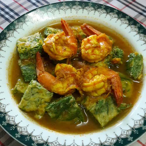 แกงส้มชะอมชุบไข่ทอดใส่กุ้งสด