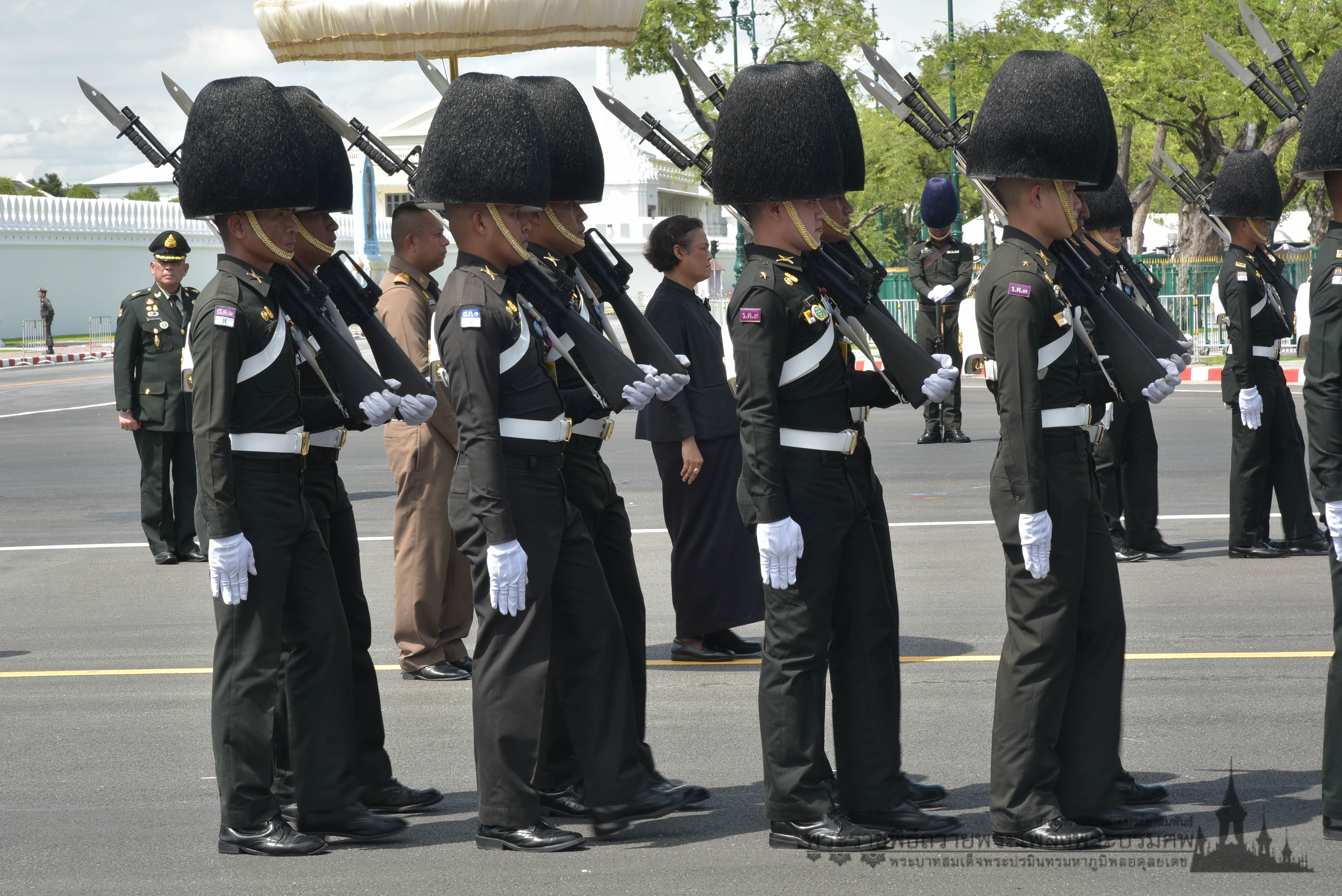 การฝึกซ้อมริ้วขบวนพระบรมราชอิสริยยศ ในวันที่ 15 ตุลาคม 2560 ได้รับใบอนุญาตภายใต้ ให้เผยแพร่-โดยต้องระบุที่มาแต่ห้ามดัดแปลงและห้ามใช้เพื่อการค้า 3.0 Thailand.