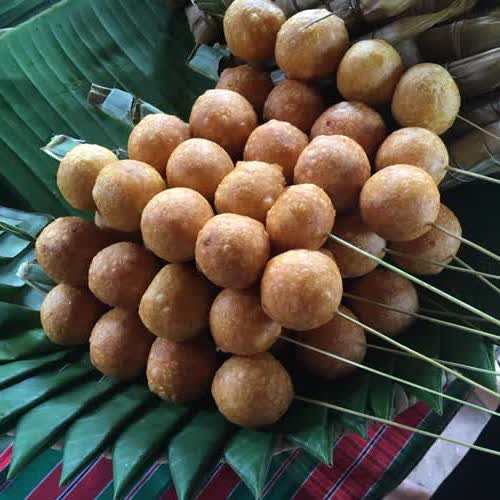 | คำอธิบาย : ไปรกะซัง คือขนมโบราณซึ่งเป็นภูมิปัญญาของชาวกูย จ.ศรีสะเกษ มีส่วนผสมหลักเป็นแป้งเหนียวและมีไส้ข้างในซึ่งทำจากการนำมะพร้าวอ่อนมาผัดเข้ากับน้ำตาล หน้าตาของขนมไปรกะซังคล้ายขนมไข่เต่าหรือไข่นกกระทาแต่มีขนาดใหญกว่า และมีความเหนียวและหนากว่าเล็กน้อย |