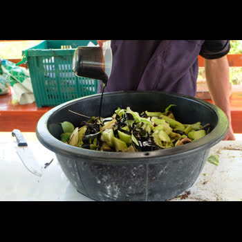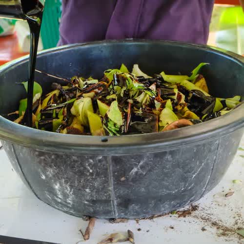 | ชื่อเรื่อง : ใส่กากน้ำตาลไปที่ต้นกล้วยที่หั่นไว้ |