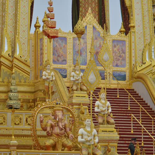 | คำสำคัญ : พระบาทสมเด็จพระปรมินทรมหาภูมิพลอดุลยเดช บรมนาถบพิตร, พระโกศ, พระราชพิธีถวายพระเพลิงพระบรมศพ, พระบรมอัฐิ, พระวิมาน, พระที่นั่งจักรีมหาปราสาท, สนามหลวง, พระเมรุมาศ |