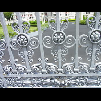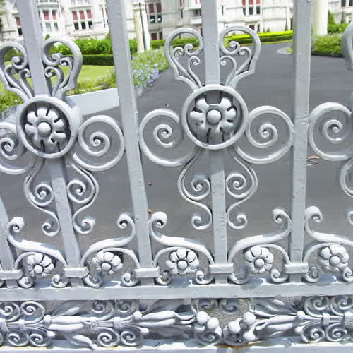 | คำอธิบาย : ประตูทวยเทพสโมสร คือประตูด้านหน้าพระที่นั่งอนันตสมาคม เป็นศิลปะสถาปัตยกรรมอิตาเลียน ที่มีความงดงามทั้งลวดลายของเสาปูน ลวดลายรั้วเหล็ก ปูนปั้นเด็กเหนือเสา |