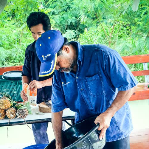 (2560). "นำถั่วเหลืองที่แช่น้ำแล้วใส่ในถัง".