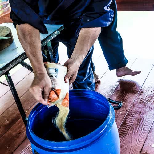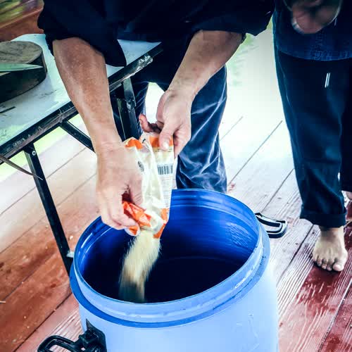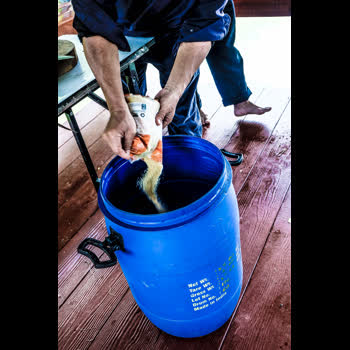 | คำอธิบาย : ใส่น้ำตาลทรายแดงตามลงไปในถังพลาสติก |