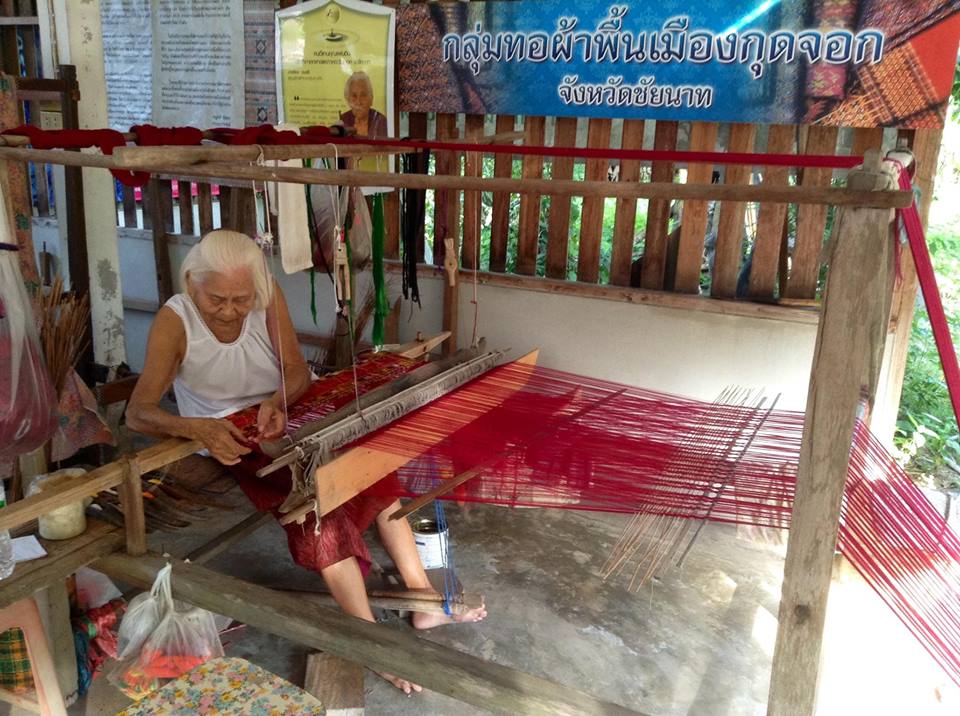 | คำอธิบาย : คุณยายซ้อง จบสี ชาวลาวครั่ง จ.ชัยนาท ผู้มีผลงานดีเด่นทางด้านวัฒนธรรม สาขาภูมิปัญญาชาวบ้าน ช่างทอผ้าชาวลาวครั่งที่มีความเชี่ยวชาญและสืบสานผ้าทอลาวครั่ง ซึ่งมีบรรพบุรุษอพยพมาจากประเทศลาว มาอาศัยอยู่ในประเทศไทยเมื่อครั้ง 200 ปีที่แล้ว ทั้งชัยนาท อุทัยธานี นครสวรรค์ พิจิตร พิษณุโลก ราชบุรี นครปฐม สุพรรณบุรี เป็นต้น |