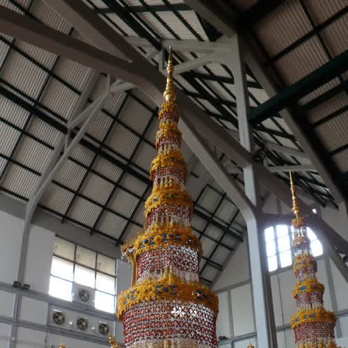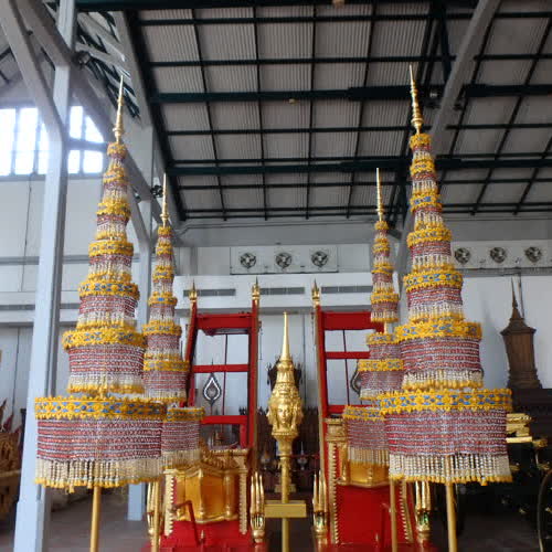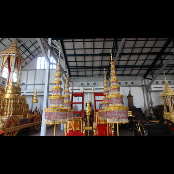 | คำสำคัญ : โรงราชรถ, พระเมรุมาศ, พระราชพิธีถวายพระเพลิงพระบรมศพ, ฉัตร7ชั้น, พระบาทสมเด็จพระปรมินทรมหาภูมิพลอดุลยเดช, ฉัตรดอกไม้สด, พิพิธภัณฑสถานแห่งชาติพระนคร, พระจิตกาธาน |