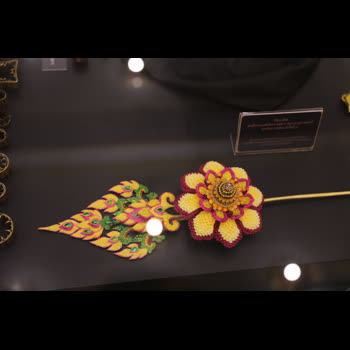 | คำอธิบาย : ดอกปาริชาติ จำนวน 70 ดอก เท่าจำนวนปีที่ทรงครองราชย์ ประดับรอบชั้นรัดเกล้าพระจิตกาธาน ดอกปาริชาติในตำนานเป็นดอกไม้บนสรวงสวรรค์ชั้นดาวดึงส์ เกิดในสวนอันมีนามว่า ปุณฑริกวัน มีกลิ่นหอมไกลถึง 5,000 โยชน์ ใครได้กลิ่นจะระลึกชาติได้ เป็นการประดิษฐ์โดยใช้จินตนาการของทีมช่างฝีมือ โดยใช้ดอกสีเหลือง ซึ่งเป็นสีประจำวันพระราชสมภพ และสีชมพูอมม่วง หรือชมพูอมแดง ซึ่งเป็นสีกำลังวันของพระองค์ เกสรใช้เมล็ดธัญพืช ที่พระราชทานแก่เกษตรกรให้ไปปลูก ใจกลางของดอกปาริชาติเกสรชั้นในสุด ประดิษฐ์จากพลอยนพรัตน์จาก จ.จันทรบุรี จัดแสดงอยู่ ณ นิทรรศการพระเมรุมาศ ท้องสนามหลวง โดยจัดแสดงถึงวันที่ 30 พฤศจิกายน พ.ศ.2560 |