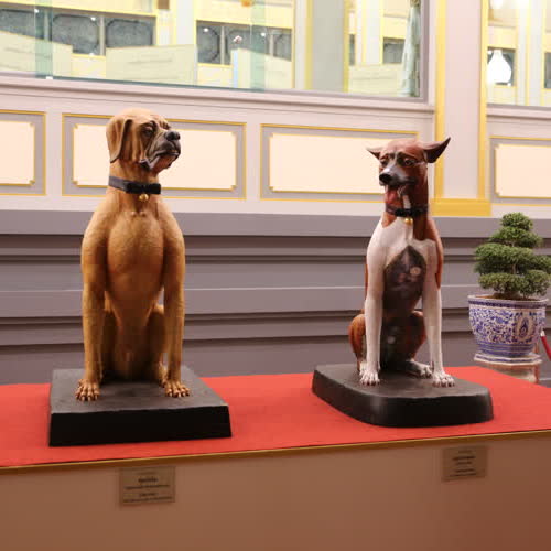 | คำสำคัญ : สุนัขทรงเลี้ยง, พระบาทสมเด็จพระปรมินทรมหาภูมิพลอดุลยเดช, พระจิตกาธาน, ประติมากรรม, รูปปั้น, พระเมรุมาศ, พระราชพิธีถวายพระเพลิงพระบรมศพ, คุณโจโฉ, คุณทองแดง |