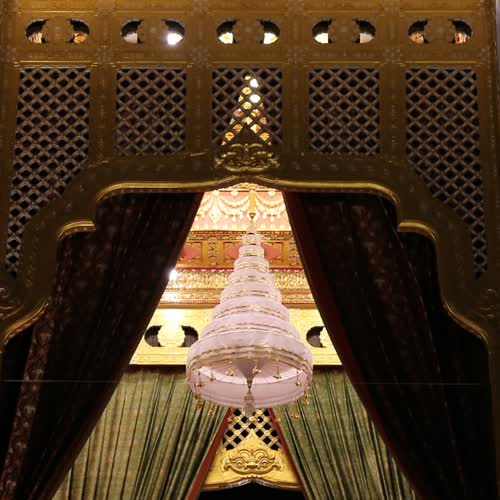 | คำอธิบาย : เมื่อปฏิบัติการถวายพระเพลิงพระบรมศพเสร็จสิ้นแล้ว เจ้าพนักงานจะอัญเชิญ นพปฎลมหาเศวตฉัตร ขึ้นแขวนในพระเมรุมาศ เหนือพระจิตกาธาน เพื่อถวายสุมพระบรมอัฐิ ตามพระบรมราชอิสริยยศแห่งพระมหากษัตริย์ นพปฎลมหาเศวตฉัตร หรือเรียกโดยย่อว่า พระมหาเศวตฉัตร เป็นฉัตรผ้าขาว 9 ชั้น แต่ละชั้นมีระบาย 3 ชั้น ขลิบทองแผ่ลวด ชั้นล่างสุดห้อยอุบะจำปาทอง |