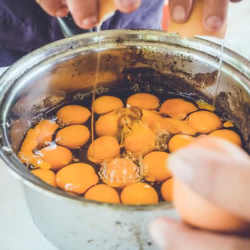 | คำอธิบาย : ไข่ที่ตอกแล้ว เตรียมพร้อมนำไปทำฮอร์โมนไข่ |