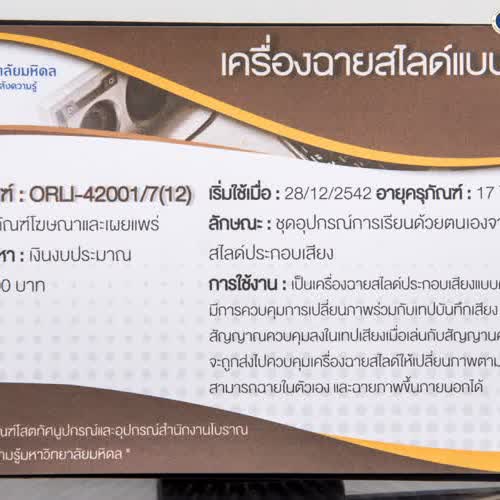 (2561).                            "เครื่องฉายสไลด์แบบตู้ฉาย (Slide Projector Recorder)".