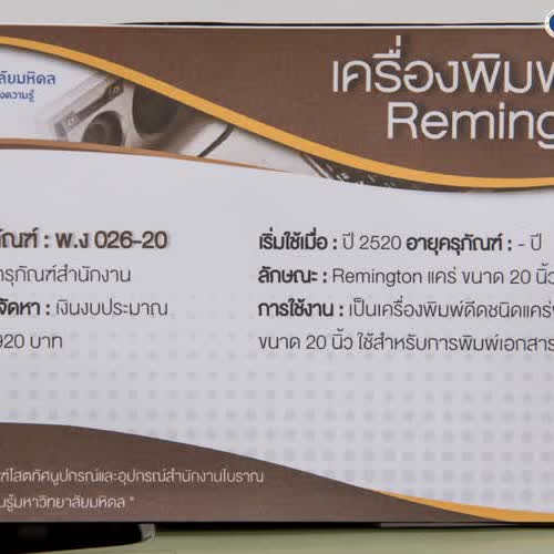 | ผู้สร้างสรรค์/ผู้แต่ง/เจ้าของผลงาน : พิพิธภัณฑ์โสตทัศนูปกรณ์และอุปกรณ์สำนักงานโบราณ หอสมุดและคลังความรู้มหาวิทยาลัยมหิดล |