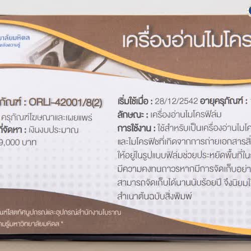 (2561). "เครื่องอ่านไมโครฟิช (Microfilm Reader)".