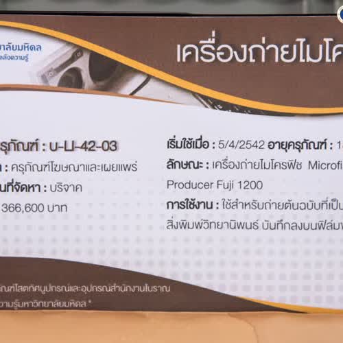 (2561). "เครื่องถ่ายไมโครฟิช (Microfiche machine)".