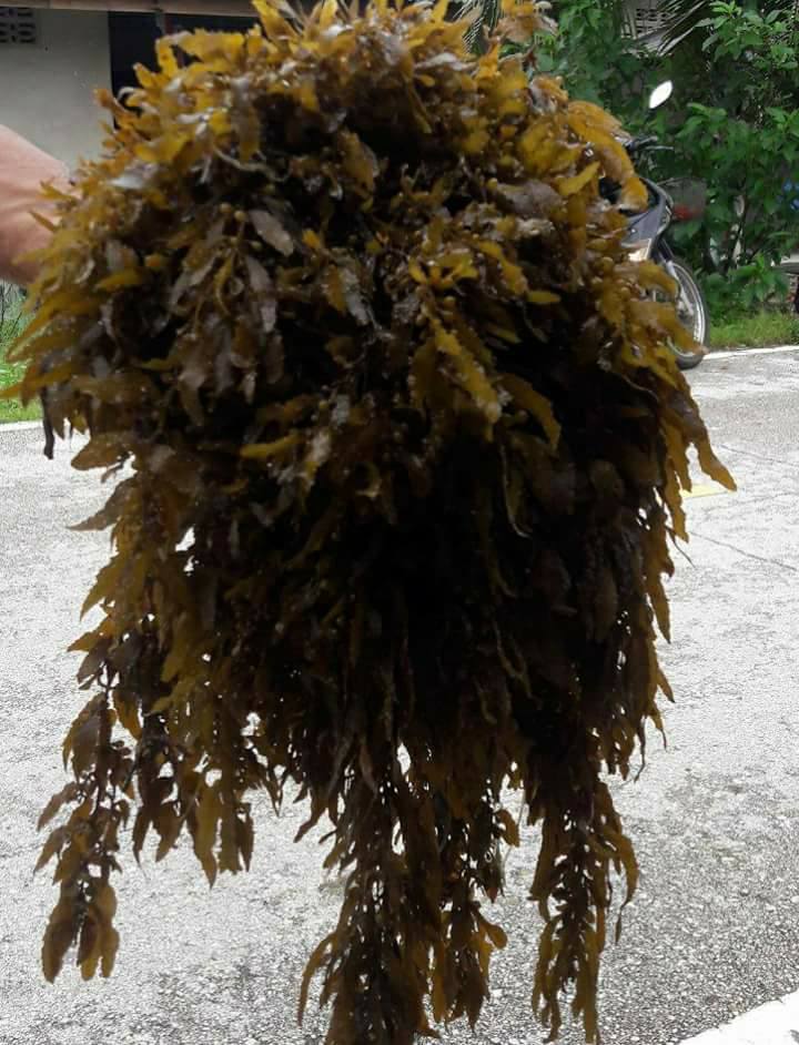 | คำอธิบาย : สาหร่ายสีน้ำตาล ช่วงมรสุม ทะเลอ่าวไทยจะมีคลื่นลมแรง มีสาย (สาหร่ายสีน้ำตาล) ขึ้นมาบนฝั่ง ชาวบ้านจะเก็บมาประกอบอาหาร ซึ่งเค้าเรียกมันว่า " สายใบ " มันคือสาหร่ายสีน้ำตาล |