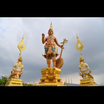 | คำอธิบาย : ท้าวธตรฐ เทพเจ้าแห่งคนธรรพ์ ผู้ปกครองทิศตะวันออก ฤดูร้อน ธาตุไฟ ทรงพินเป็นสัญลักษณ์ |