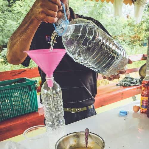 "เทน้ำสะอาดใส่ขวด".