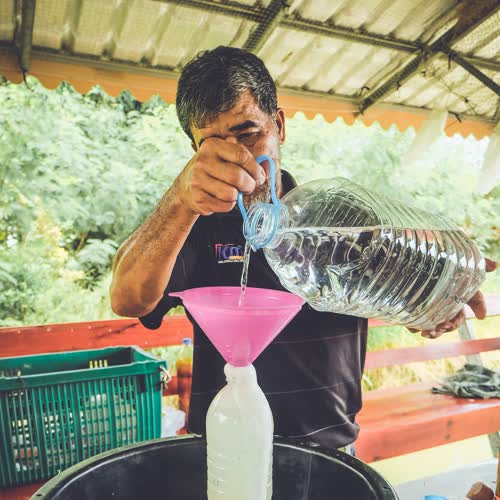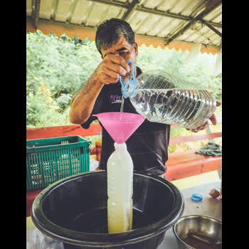 "เอาน้ำเติมให้เต็มเพื่อไล่ฟองอากาศให้หมด".