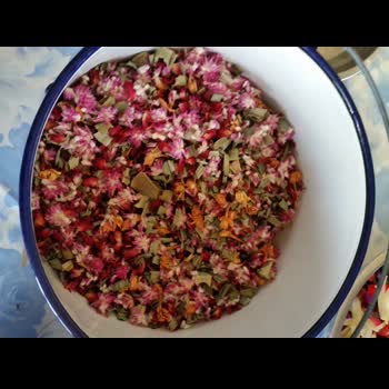 | ชื่อเรื่อง : บุหงาดอกไม้แห้ง ขั้นที่ 1 นำดอกไม้หอมหลากสีสรรมาคละเคล้าผสมกัน |