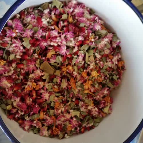 บุหงาดอกไม้แห้ง ขั้นที่ 1 นำดอกไม้หอมหลากสีสรรมาคละเคล้าผสมกัน ได้รับใบอนุญาตภายใต้ ให้เผยแพร่-โดยต้องระบุที่มา-แต่ห้ามดัดแปลง 3.0 Thailand.