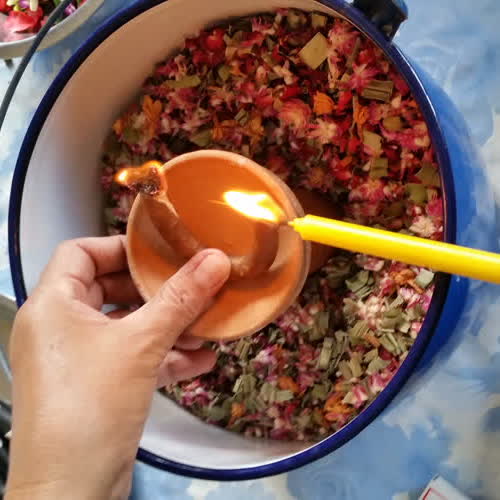 บุหงาดอกไม้แห้ง ขั้นที่ 2 นำมาอบควันเทียนหอม