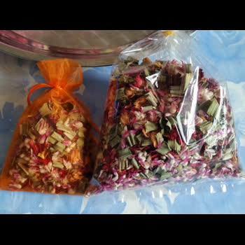| ชื่อเรื่อง : บุหงาดอกไม้แห้ง ขั้นที่ 3 นำบุหงาบรรจุใส่ถุงผ้าโปร่ง |