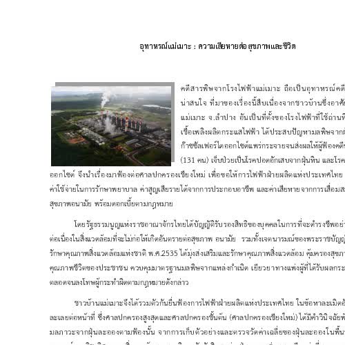 รีวิว : อุทาหรณ์แม่เมาะ ความเสียหายต่อสุขภาพและชีวิต (ครองธรรม)