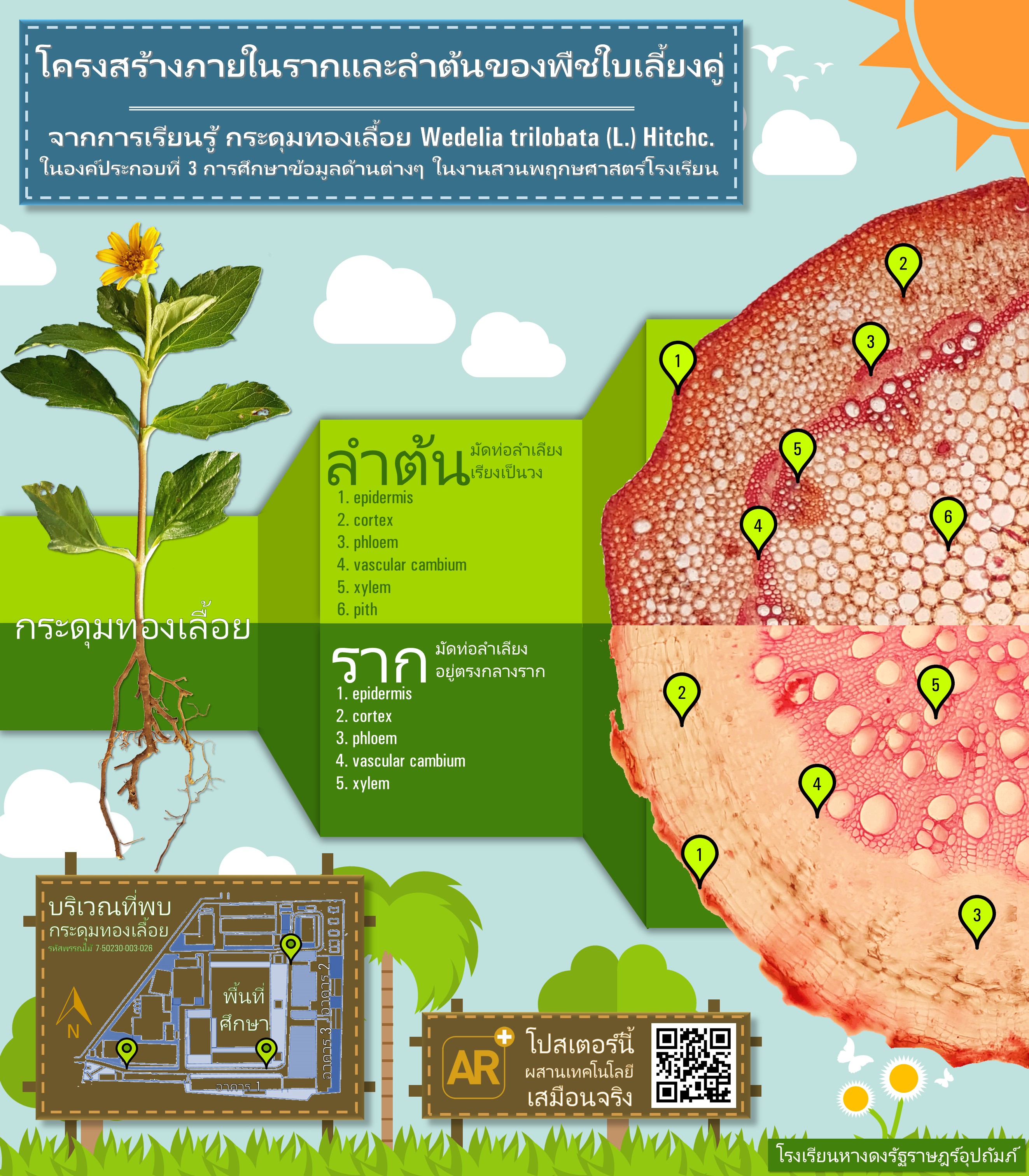 | คำสำคัญ : งานสวนพฤกษศาสตร์โรงเรียน, อินโฟกราฟิก, สื่อการการสอน, Smart Phone, อพ.สธ., โครงสร้างภายในของพืชใบเลี้ยงคู่, ar, Infographic, AR Code, สวทช, ประกวดสร้างสรรค์สื่ออินโฟกราฟิก, qr code |