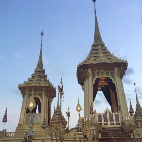 | คำอธิบาย : พระเมรุมาศสำหรับพระราชพิธีถวายพระเพลิงพระบรมศพ ในหลวง รัชกาลที่ 9 พระบาทสมเด็จพระปรมินทรมหาภูมิพลอดุลยเดช ณ มณฑลพิธีท้องสนามหลวง |