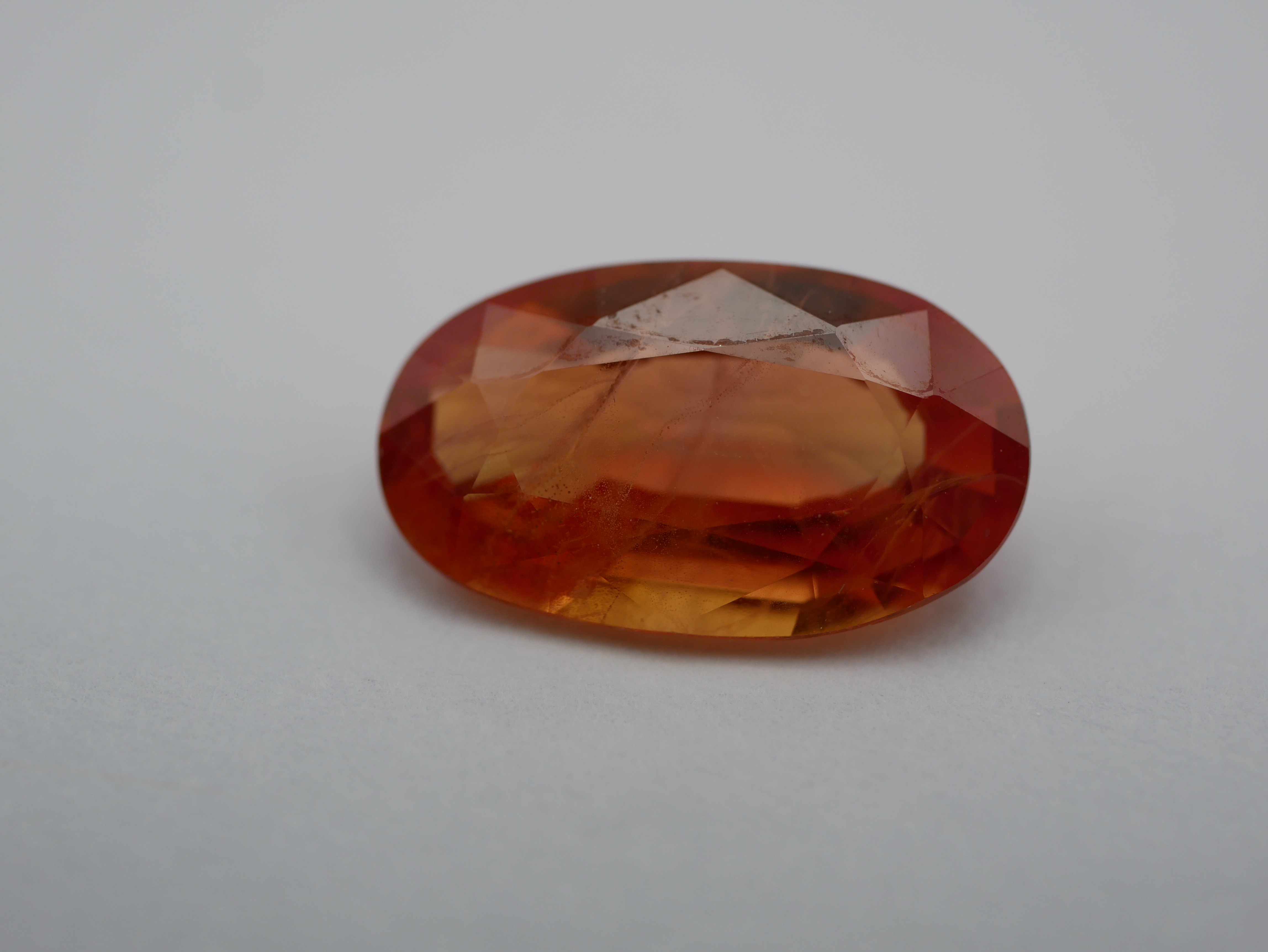 คำอธิบาย : พญาพลอย หมายถึง พลอยเม็ดแรกที่ขุดได้จากสายแร่ นิยมเก็บไว้บูชา เพื่อเป็นสิริมงคลและนำโชค โดยพญาพลอยในภาพขุดได้จากบ่อตกพรม ตำบลตกพรม อำเภอขลุง จังหวัดจันทบุรี ลักษณะเด่นคือมีสีส้มอมชมพู ซึ่งเกิดจากการนำพลอยทับทิมสีชมพูซึ่งมักพบในบ่อตกพรม มาผ่านกระบวนการเผาหรือหุงที่ใช้ความร้อน |