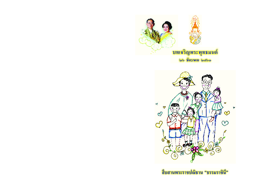 | คำสำคัญ : บำเพ็ญพระราชกุศล, พิธีมหามงคล, พระปรมินทรมหาภูมิพลอดุลยเดช, พระเจ้าอยู่หัว, พระราชวังดุสิต, สมเด็จพระนางเจ้าสิริกิติ์, ร.9, ร.10, ธรรมราชินี, หนังสือบทเจริญพระพุทธมนต์ |
