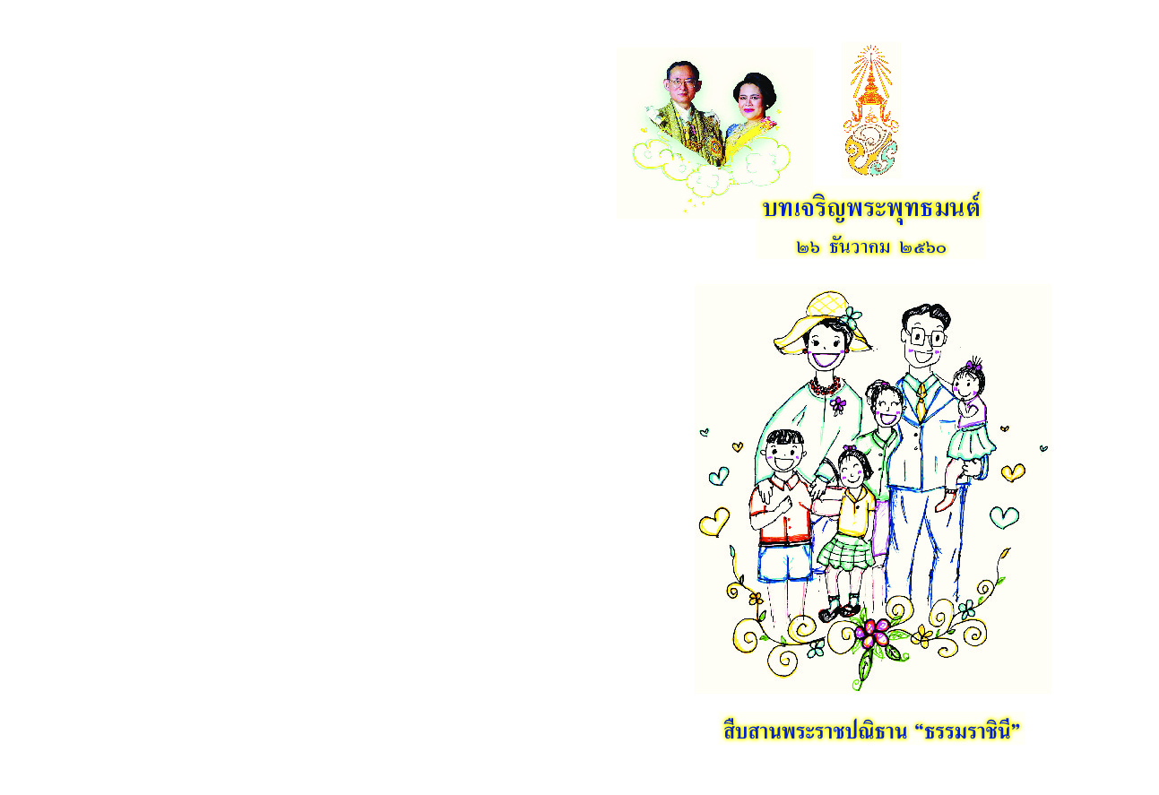 (2560). หนังสือบทเจริญพระพุทธมนต์ 26 ธันวาคม 2560 เพื่อสืบสานพระราชปณิธาน “ธรรมราชินี” (A4 บาลี),