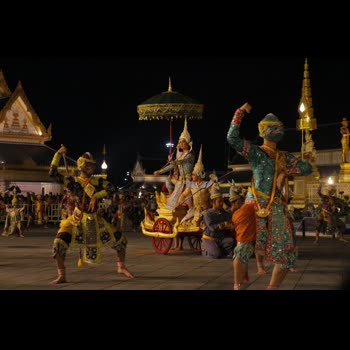 | คำสำคัญ : พระที่นั่งทรงธรรม, รามเกียรติ์, โขน, สำนักการสังคีต, พระปรมินทรมหาภูมิพลอดุลยเดช, ยกรบ, พระราชพิธีถวายพระเพลิงพระบรมศพ, ข้ามสมุทร |