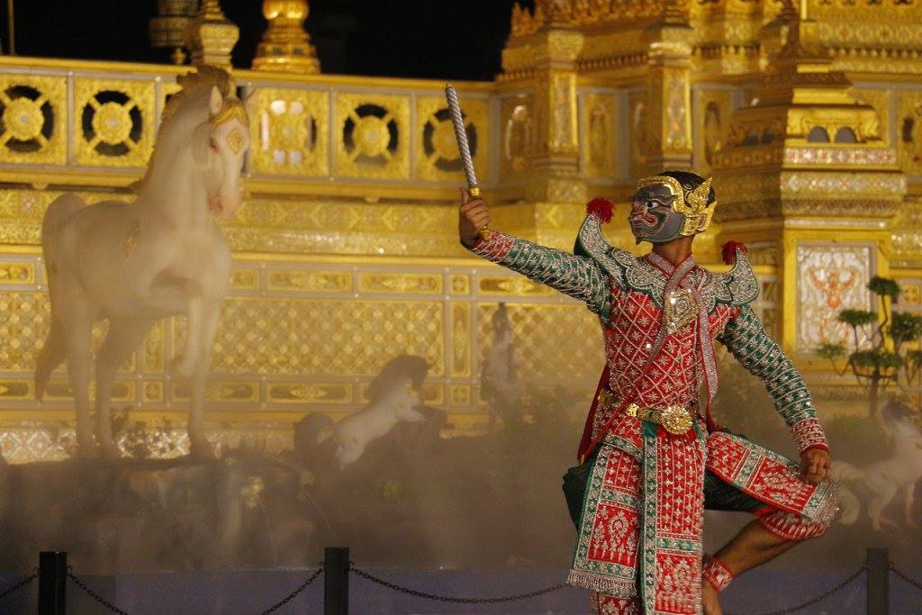 | คำอธิบาย : กรมศิลปากร โดยสำนักการสังคีต จัดการแสดงโขนเรื่องรามเกียรติ์ ชุด"ข้ามสมุทร - ยกรบ" หน้าพระที่นั่งทรงธรรม เนื่องในนิทรรศการงานพระราชพิธีถวายพระเพลิงพระบรมศพ พระบาทสมเด็จพระปรมินทรมหาภูมิพลอดุลยเดช บรมนาถบพิตร ตั้งแต่เวลา ๑๙.๐๐-๑๙.๓๐ น.แสดงทุกวันศุกร์ เสาร์ และอาทิตย์ จนถึงวันที่ ๓๑ ธันวาคม ๒๕๖๐ |