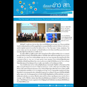 | คำอธิบาย : จดหมายข่าว สท. สถาบันการจัดการเทคโนโลยีและนวัตกรรมเกษตร (สท.) ฉบับที่ 14 ประจำเดือนพฤศจิกายน 2560 กิจกรรมเดือนพฤศจิกายน 2560 เนื้อหาหลักประกอบด้วย1. The Thai-Israeli Tomato Conference: The current status and the way forward2. คณะผู้บริหารและบุคลากรจากองค์การตลาดเพื่อเกษตรกร (อ.ต.ก.) เยี่ยมชม สวทช\"3. “เครื่องสีข้าวชุมชนเพื่อความสุขของคนบ้านสามขา” 4. “บ้านนาเยีย” : เรียนรู้ผลิตปุ๋ยอินทรีย์และเพาะกล้าอย่างมืออาชีพแปรรูปผลิตภัณฑ์จากมันสำปะหลัง5. Kickoff โครงการการศึกษาวิจัย “การบริหารจัดการน้ำใต้ดินอย่างยั่งยืน”6. “ลุงสวัสดิ์ การะหงษ์” ผู้ประกอบการเกษตรรุ่นเก๋า กับธุรกิจจากสัตว์ตัวจิ๋ว |