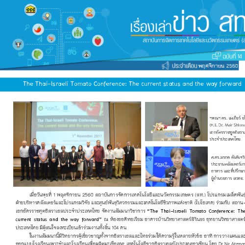 รีวิว : จดหมายข่าวสถาบันการจัดการเทคโนโลยีและนวัตกรรมเกษตร (สท.) เดือนพฤศจิกายน 2560
